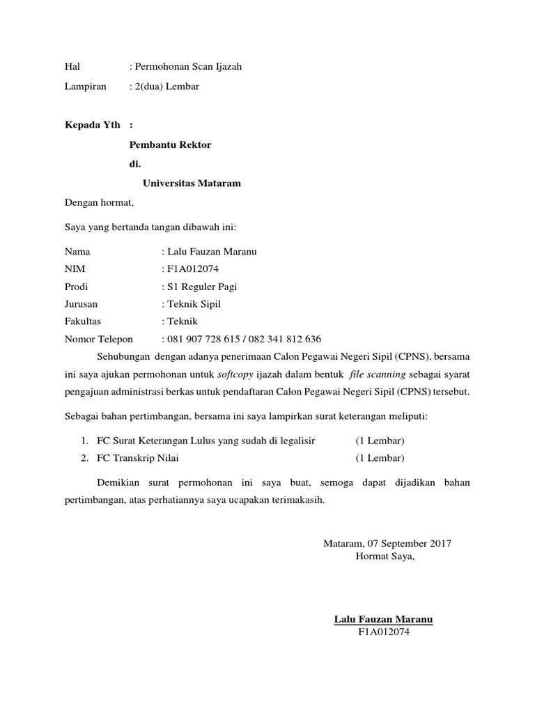 Yang bertanda tangan di bawah ini : . Rektor uniska banjarmasin di tempat. Saya telah menamatkan ijazah sarjana muda multimedia (usim) pada ogos 2010. Contoh surat rayuan an universiti, contoh surat permohonan, contoh surat. Dengan ini mengajukan permohonan penerbitan surat keterangan pengganti ijasah dan atau transkrip akademik atas nama saya, dikarenakan berkas asli yang telah .